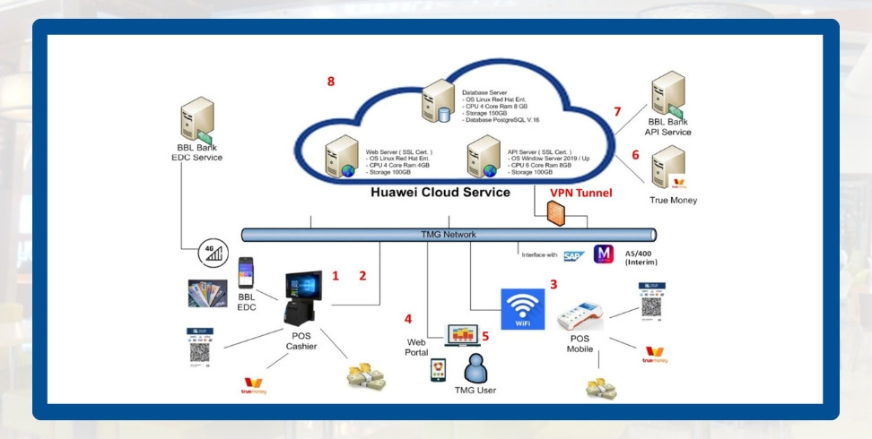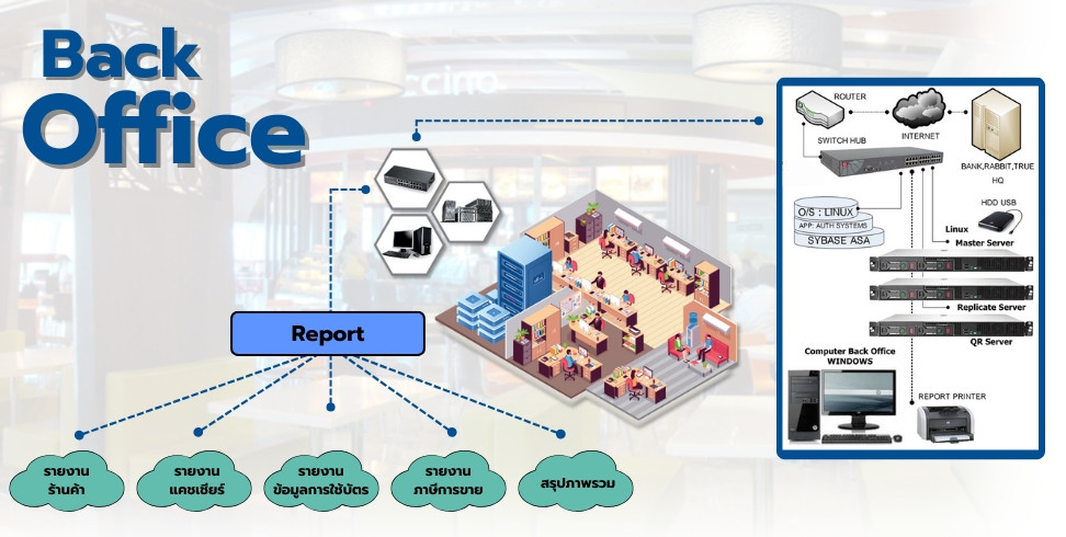องค์ประกอบทั้งสามส่วนนี้จะทำงานเชื่อมต่อกันแบบเรียลไทม์ ทำให้ทุกธุรกรรมที่เกิดขึ้น ไม่ว่าจะเป็นการเติมเงินที่จุดบริการ หรือการใช้จ่ายที่ร้านค้า จะถูกบันทึกและประมวลผลในระบบบริหารจัดการหลังบ้านทันที ส่งผลให้การดำเนินงานของศูนย์อาหารมีประสิทธิภาพ โปร่งใส และสามารถตรวจสอบได้ในทุกขั้นตอน