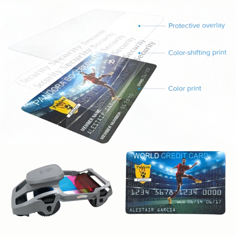 ริบบอนรุ่นนี้ประกอบด้วยแผงสี 6 แผง ที่มีความสามารถในการพิมพ์ที่หลากหลายและเพิ่มความปลอดภัยให้บัตรของคุณ ได้แก่: